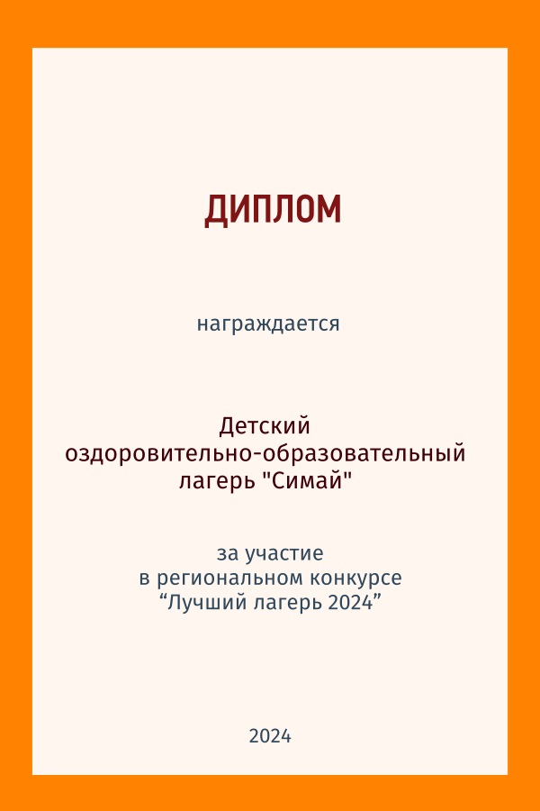 За участие в региональном конкурсе “Лучший лагерь 2024”.